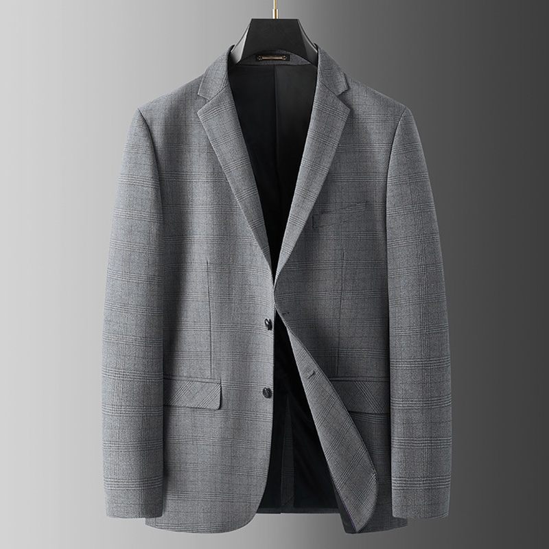 3-częściowy Garnitur Męski Duży I Wysoki Zapinany Na Dwa Guziki Z Płaskim Kołnierzykiem Wzorem W Kratę