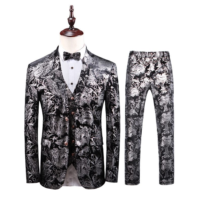 3-częściowy Garnitur Męski Zapinany Na Dwa Guziki Wąska Suknia Wizytowa Łatwa W Pielęgnacji