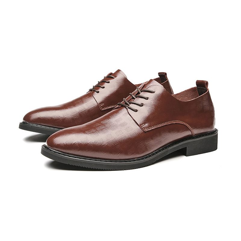 Buty Derby Męskie Wizytowe Tłoczona Skóra Bydlęca Z 4 Oczkami