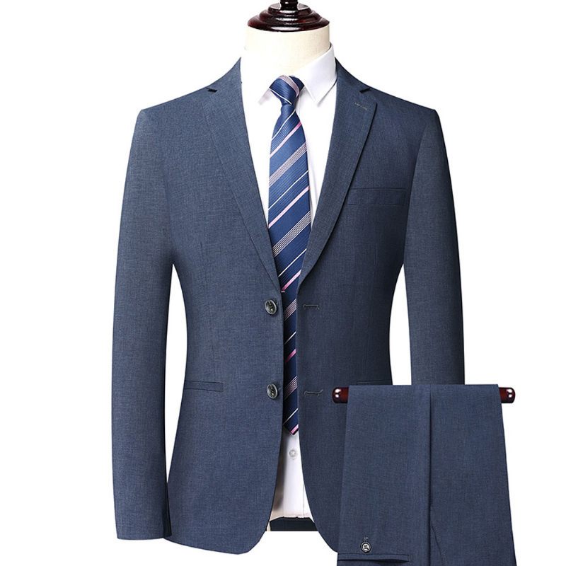 Dwuczęściowy Garnitur Męski Slim Business Nowoczesny Strój Wizytowy Suknia Ślubna Dwa Guziki