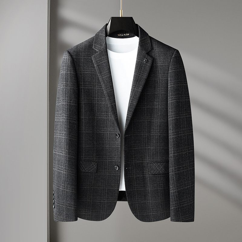 Męska Marynarka Sportowa Płaszcz W Kratę Wzór Paski Dwa Guziki Płaski Kołnierzyk Kieszenie Z Klapką Duży Rozmiar