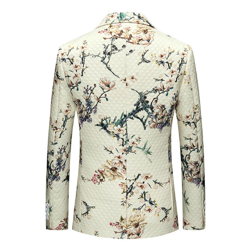 Męska Marynarka Sportowa Szczupła Kwiatowy Wzór Botaniczny Jeden Guzik