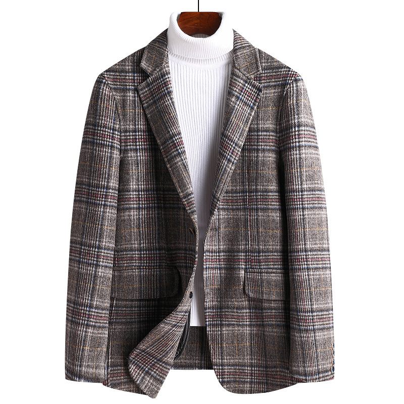 Męska Marynarka Sportowa W Kratę Wełniana Gruby Blok Kolorów Dwa Guziki