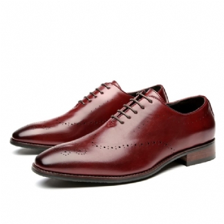 Męskie Buty Wizytowe Oxford Ze Skóry Bydlęcej Rzeźbione Sznurowane Noski